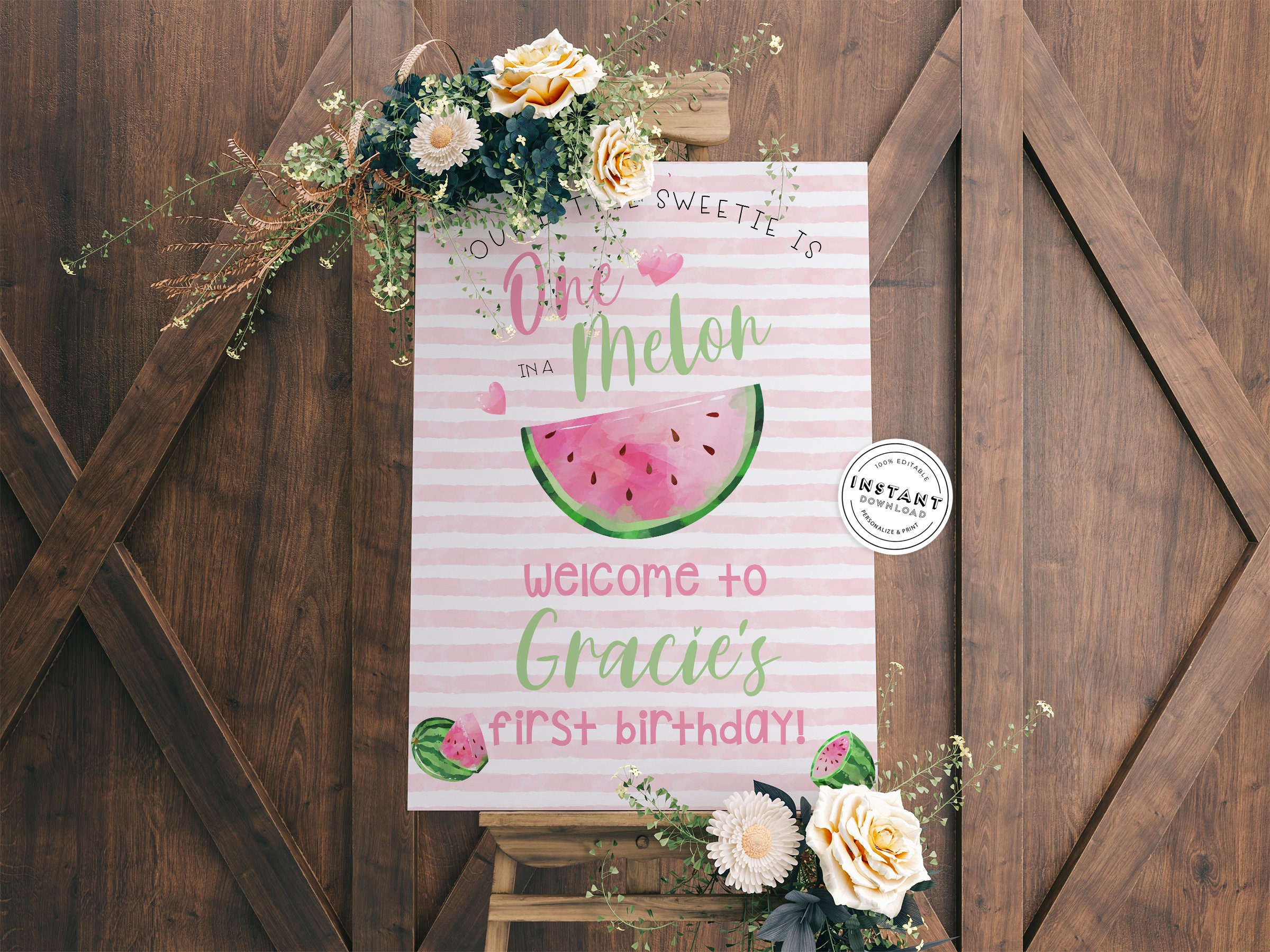 Printable One in A Melon Welcome Sign Editable Welcome Etsy